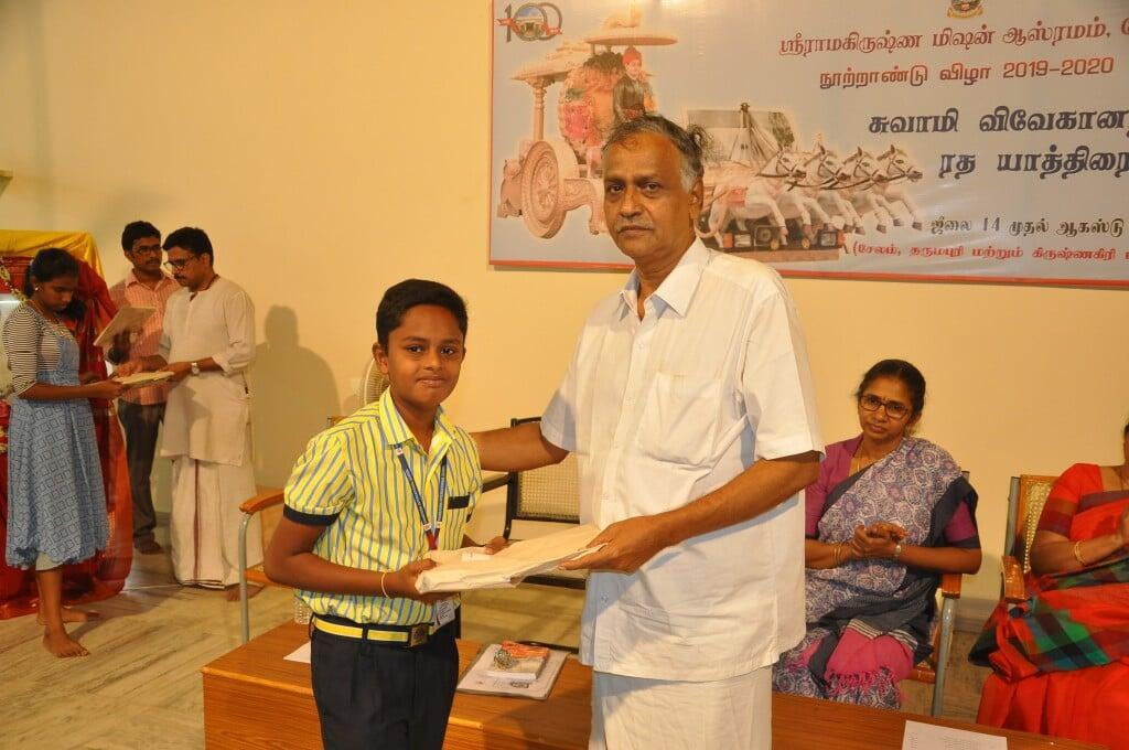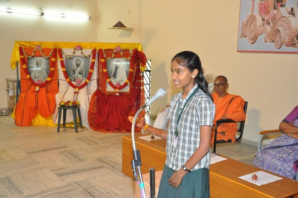 The Competitions will be held for students from I to XII Std in Recitation, Oratory, Essay Writing (both in English and Tamil), Gita Chanting, Devotional Music, Drawing / Painting.