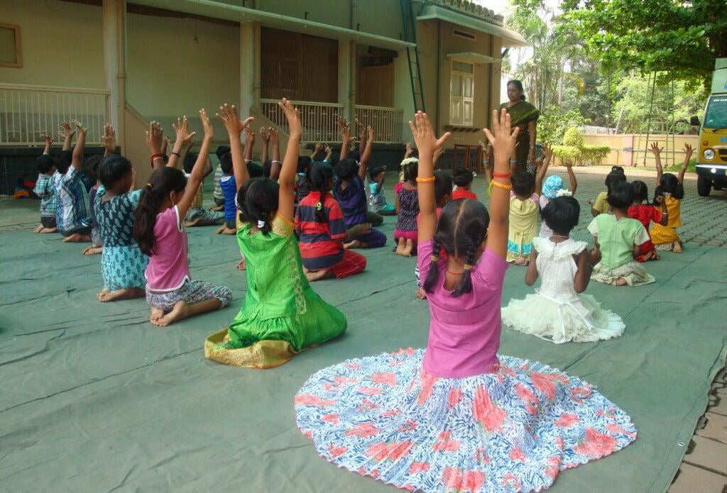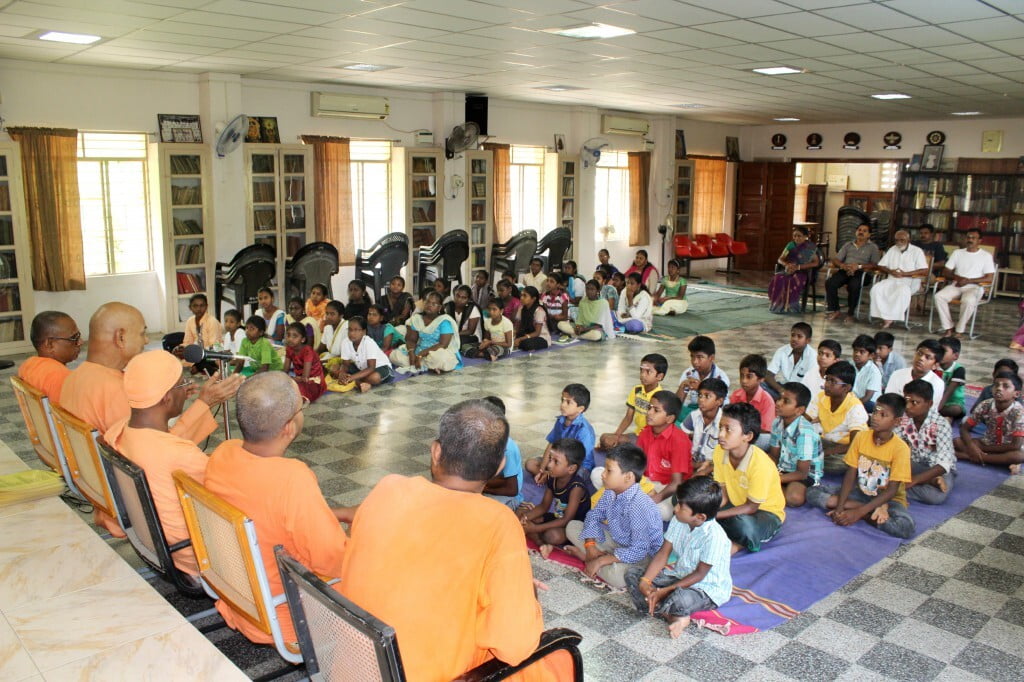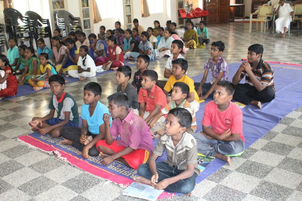 Bala Sangha, a Free Sunday School for the children of age group of 7-12 is conducted on Sunday mornings at the Ashrama between 9.30 a.m. and 11.30 am Bhajans, Yoga, Story-telling, Short films on spiritual stories / Motivational / inspirational / etc are being conducted by able dedicated volunteers. After the program the children are given refreshments by distribution of snacks and health drink.