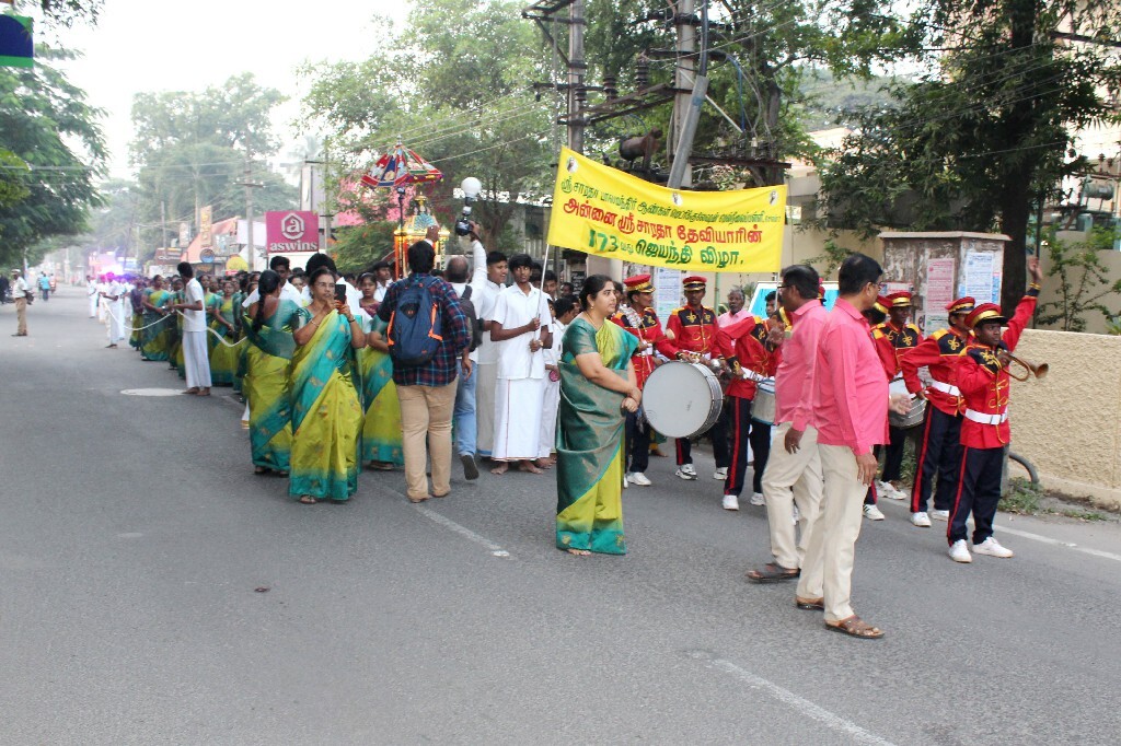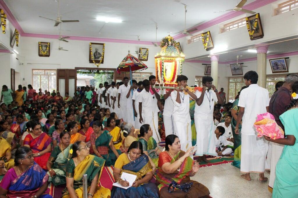 Holy Mother Sri Sarada Devi Jayanti was Celebrated on Sunday 11.12.2025 with Special puja, Homa, Bhajans & lectures in the morning by Swami Yatatmananda & in the evening by Sri Narai. S.Nellaiappan. Lunch prasad served to 1200 devotees. 6.30 to 8.00 pm, evening Deeparadana followed by Lecture on Holy Mother, attended by 120 devotees. Students of Sri Sarada Educational Institutions, Matajis, Tapovanam Swamis & staff members came in a procession carrying the palanquin of Holy Mother. Laddu prasad was distributed to 1000 persons.