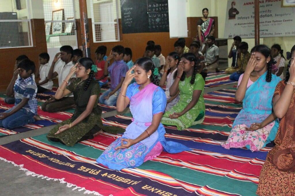 Eight teachers and one dedicated Volunteer as Supervisor are engaged to teach and take care of the students. Children are performing Yoga for about 15 minutes during closing session of the tuition class followed by a prayer. Weekly once, lives of Sri Ramakrishna, Holy Mother Sri Saradadevi and Swami Vivekananda are being taught. Every quarter the height & weight of the students are noted.